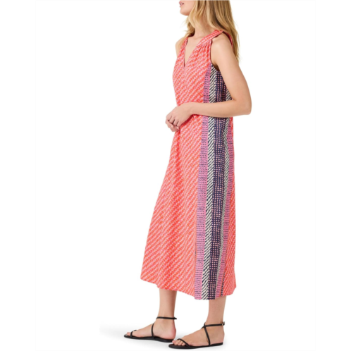 The NIC+ZOE Spotty Stripes Dress is so much more than stripes. The artsy placed pattern down the side panels switches up your standard stripes: the perfect summer throw on whether you're dressing it up under a blazer or down under a denim jacket. The A-line dress features a V-neckline, sleeveless design with an on-trend semi-halter straps and a band collar. It is intended to fall below the knee.