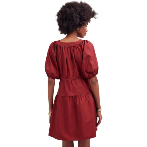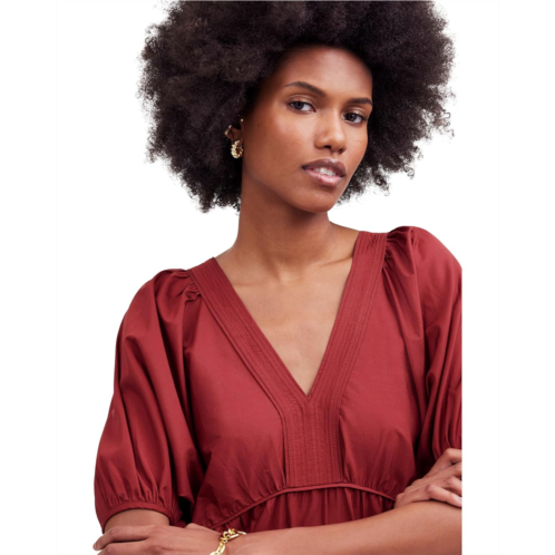 Effortlessly chic, perfectly playful - The Madewell Elora Mini in Midweight Arvind Poplin is your go-to for casual elegance. Its V-neck and easy fit ensure comfort, while voluminous puff sleeves and a tiered skirt with handy pockets add a touch of whimsy. Above-the-knee length with topstitching and soft piping details exudes an effortless style.