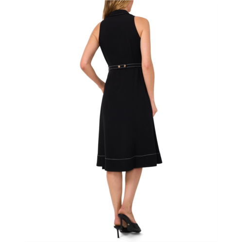 The CeCe Sleeveless Belted Waist Midi Dress is perfect for those who want to look chic without compromising comfort. Pair it with sandals or sneakers during the day, or dress it up with heels and statement jewelry for a more formal evening ensemble. The midi dress features a gauzy crepe fabrication, collared V-neck, sleeveless design, button-front closure, belt detail on the waist, solid pattern, and a fit-and-flare silhouette.