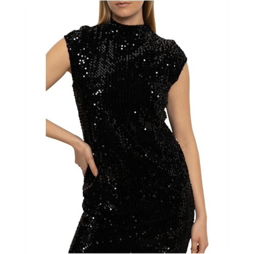 Dazzle the night away styling Sanctuary An Affair To Remember Dress. Designed in a classic fit that flatters every curve, this sleeveless sequin dress features a chic mock neck for a polished edge, while its above-the-knee length strikes the perfect balance between playful and refined. The zippered back closure ensures a seamless fit, making slipping in and out effortlessly easy. Crafted for unforgettable nights, this dress is more than an outfit; it's a mood, a moment, and a memory in the making.