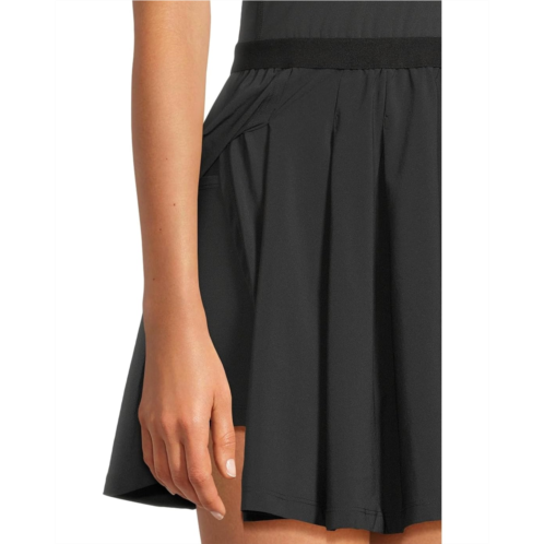 The Beyond Yoga Score Pleated Dress is a mini dress with an active lifestyle in mind. It is designed with hidden built-in shorts (with pockets) that cover your workout dress needs for sports like tennis and pickleball. The bodice of the dress is crafted in performance stretch fabric, while the skirt is made of stretch woven fabric with stitch-down front pleats. This short dress is styled with a scoop neckline and internal performance shorts with pockets. A real winner, through and through. After all, with features like an open back cutout, hidden interior shorts with pockets, and side vent access to those hidden pockets without having to lift your skirt, how can this mini dress not be claimed as the sport-to-street champ of the season?