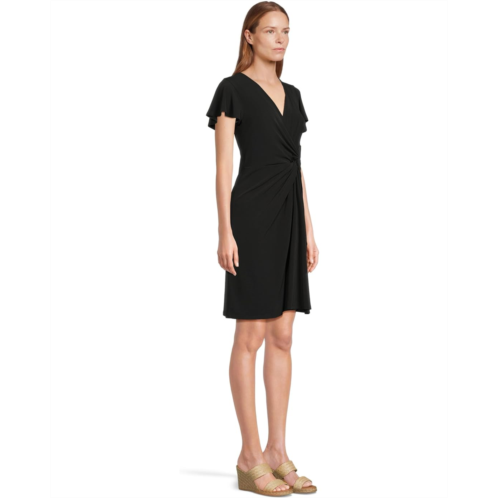 The Tommy Bahama Sophia Short Sleeve Short Dress is a flutter-sleeve faux-wrap dress with a hint of stretch for ultra comfort. Featuring an elegant twist detail, this short dress is styled with short flutter sleeves, a V-neckline, and a straight hem. It is made from wrinkle-resistant polyester blend fabric that offers UPF 30 protection.