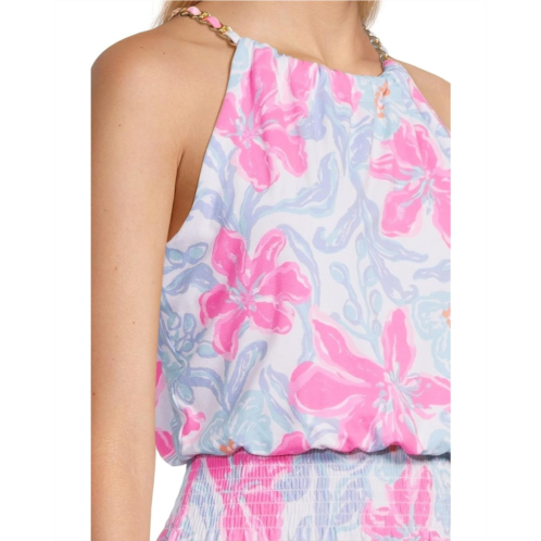 A perfect choice for parties and events, flaunt your great style wearing the Lilly Pulitzer Gracelyn Halter Midi Dress. This printed dress features a halter neckline, sleeveless style, and straight hem. The hook-and-eye closure at the back offers easy wear while the smocked detail at the waist provides a flattering fit. Styled with gold chain trim at the neckline and side slits, this stylish dress works for different occasions.