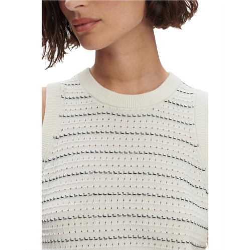 Classic meets contemporary in the sleeveless Varley Mindy Contrast Stitch Knit Dress. An elegant knit version of a mini dress, the Mindy is the perfect centerpiece for an understated look. It is made from 100% cotton in an intricate fine gauge textured stitch, which provides coverage while still being lightweight. For added intricacy, it features a contrast stitch running throughout and splits at the hem. Designed in a pullover style with a classic ribbed crew neckline, it features a sleek, body-hugging fit that falls above the knee for a flattering, modern look.