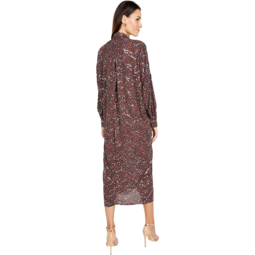 The Sabina Musayev Kendra Dress is a full-length dress featuring a print all over that falls gracefully on the body.
