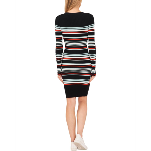 CeCe Striped Rib Long Sleeve Sweater Dress