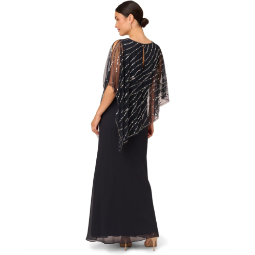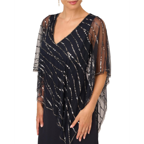 Be dazzled up for the prom in your modern look wearing Adrianna Papell Beaded Popover Midi Dress. It features a V-neckline with a sequin-embellished sheer chiffon asymmetrical cape and soft A-line maxi skirt.