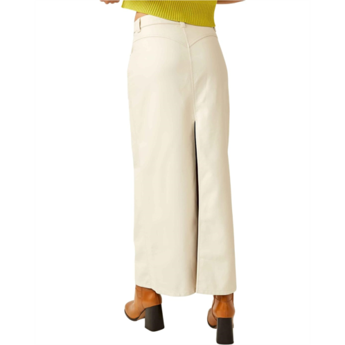 The Free People City Slicker Maxi skirt is a stylish and versatile piece that combines comfort with statement-making fashion. With its high-rise design, it sits comfortably at the natural waistline, creating a flattering fit for various body types. The relaxed silhouette of the skirt allows for ease of movement and a laid-back, effortless look.