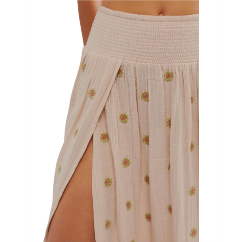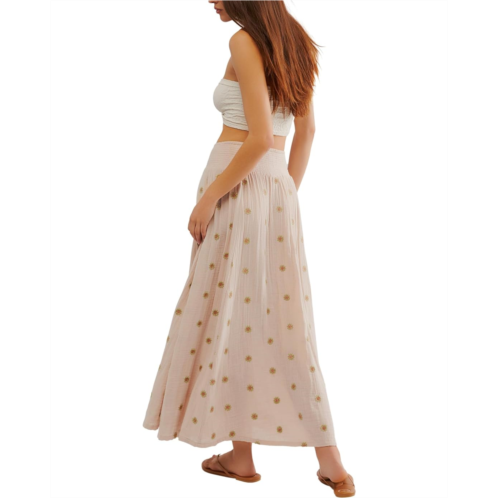 Get ready for a pool party or casual event wearing the Free People Real Love Maxi Skirt. The elasticized waistband of the skirt offers a flattering fit while the cotton fabric keeps you cool and comfortable all day. This versatile skirt features embroidered detail allover for a chic look. The mid-rise waist and front slits add to its style. Make your style statement wearing this pull-on skirt.