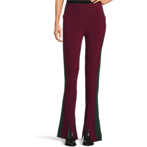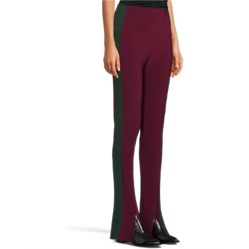 The Norma Kamali Side Stripe Spat Leggings combine sleek style with practical design elements, featuring a slim fit, high waist, and center cut slit for added flair. They are cut in a flare-leg silhouette for a flattering fit. Crafted from wrinkle-free fabric and boasting a generous 34' inseam, these high-rise leggings promise both comfort and sophistication for versatile wear.
