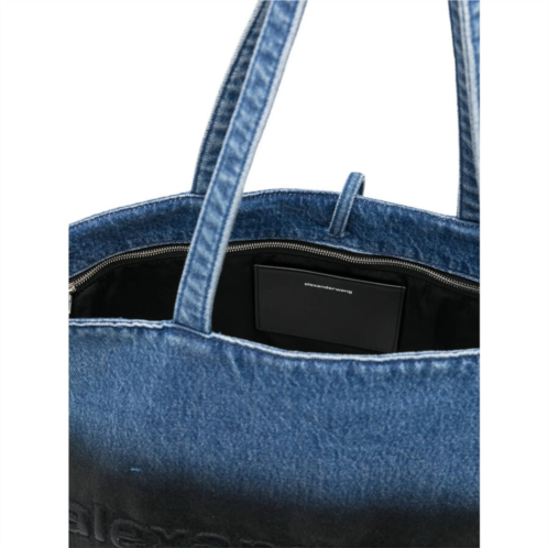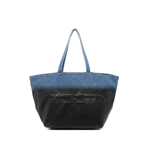 Alexander Wang Ladies Tote. SKU: 20126T04T 400D. Color: Black /Blue. Alexander Wang Bag. black and dark blue embossed logo top handles