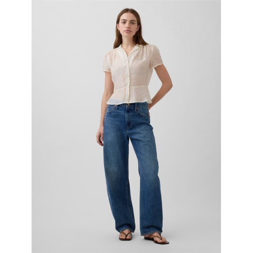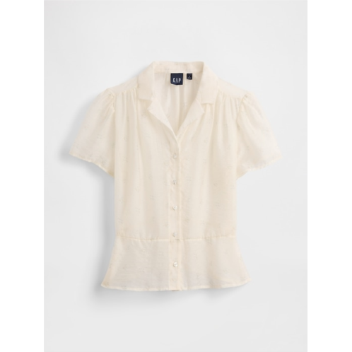 Gap Sheer Button-Front Peplum Top