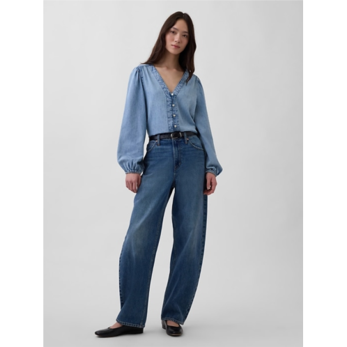 Gap Denim Puff-Sleeve Top