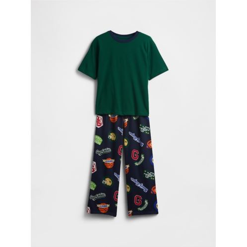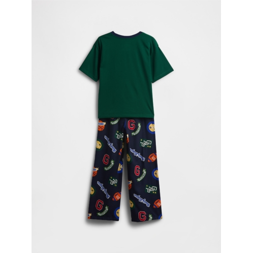 - Soft jersey oversized pajama T-shirt and brushed flannel pajama pants sleep set.