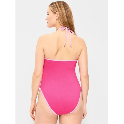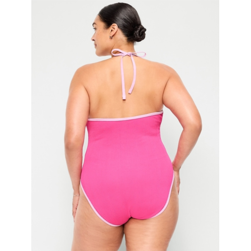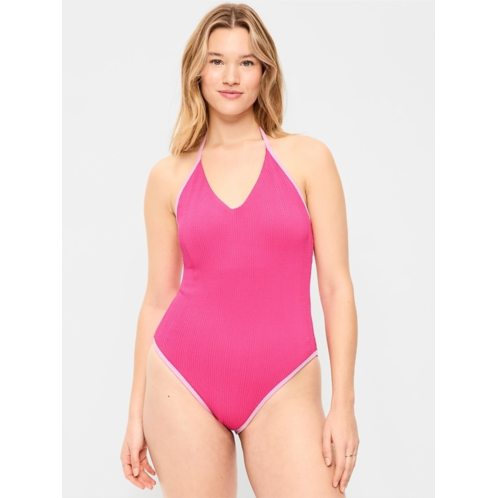 OldNavy Ribbed V-Neck Halter One-Piece Swimsuit