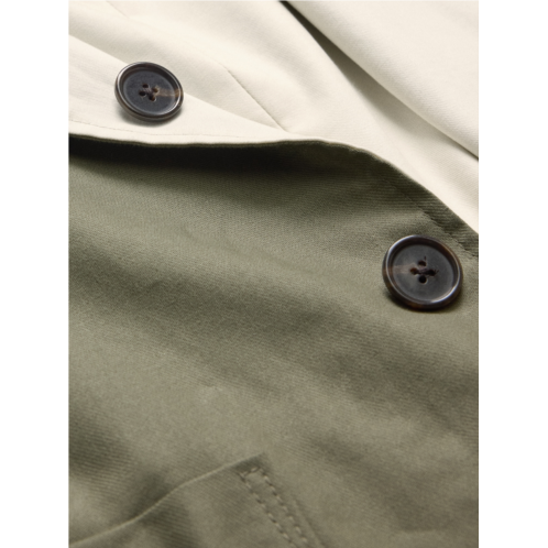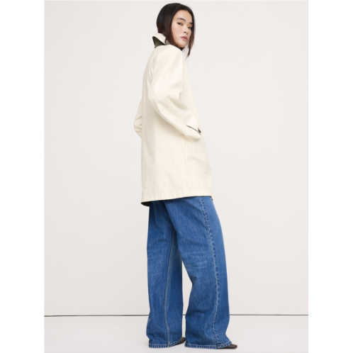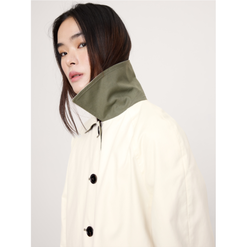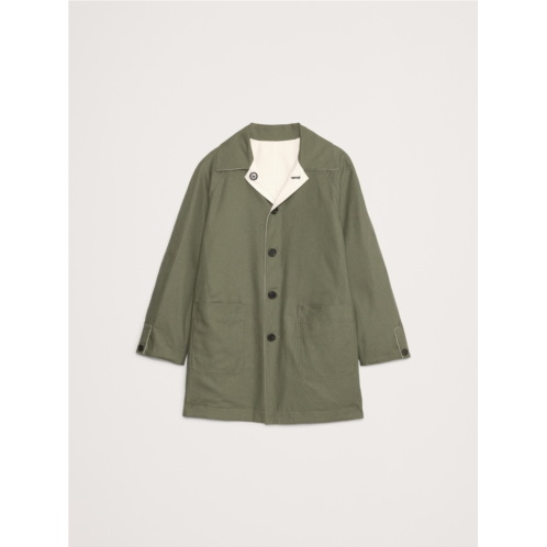 - Our take on the classic car coat, in a shorter length and fully reversible construction so you can switch between classic cream and olive green. Cut with room to layer, we selected a softly structured cotton twill fabric that looks crisp and clean in all seasons.