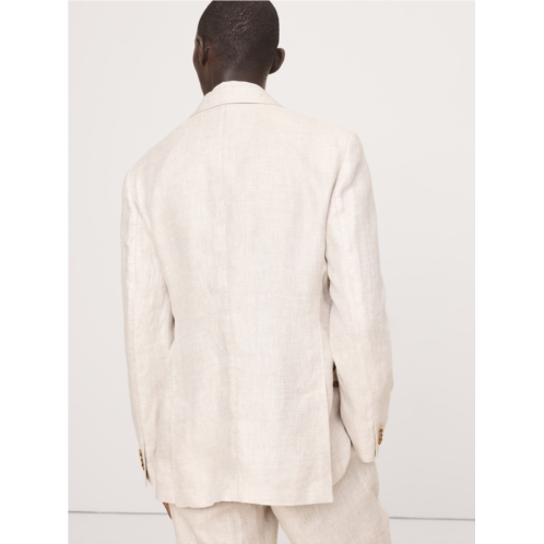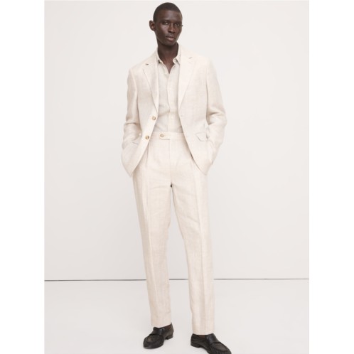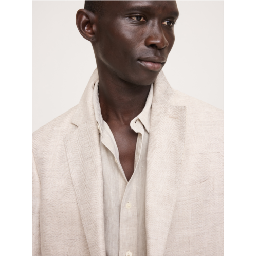 - We updated our best-selling suit with a beautiful fabric woven from 100% certified-European linen. We love the undyed color of the linen and its subtle, herringbone pattern. Plus, we left the back unlined so it's ideal for anyone who runs hot.