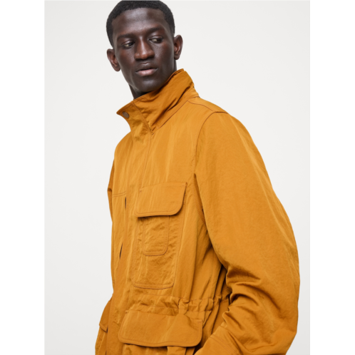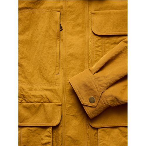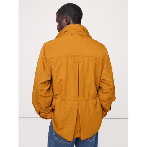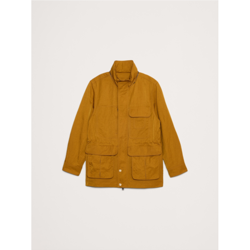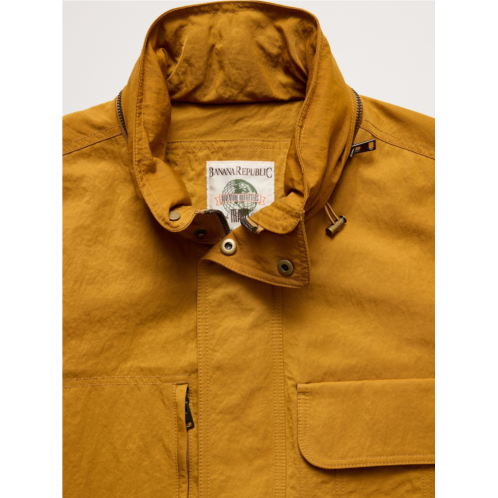 - Based on a Banana Republic jacket from the 90s, we've remade this archival piece in a crinkle nylon with water-resistant finish to keep the elements out. We preserved all the details of the amazing original: the relaxed fit, the stand collar with hidden hood, and the plethora of pockets.