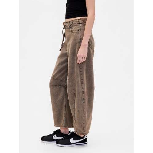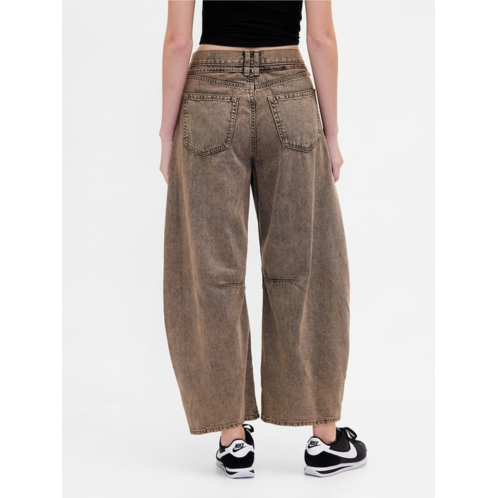 -Fit:An ankle-length horseshoe jean that's fitted at the waist with an exaggerated curved leg and tapered ankle.