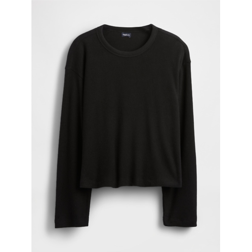 - Soft cotton-blend waffle-knit cropped pajama top.