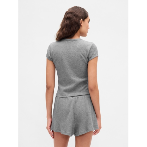 - Soft, cozy brushed waffle-knit pajama T-shirt in a slightly cropped length.