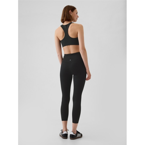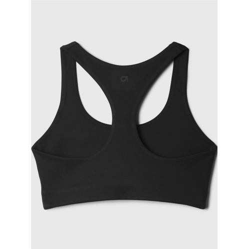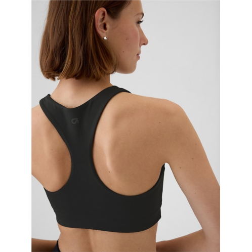 - This sports bra is made with 79% recycled polyester. Compared to virgin materials, using recycled materials helps to reduce resource use and waste.