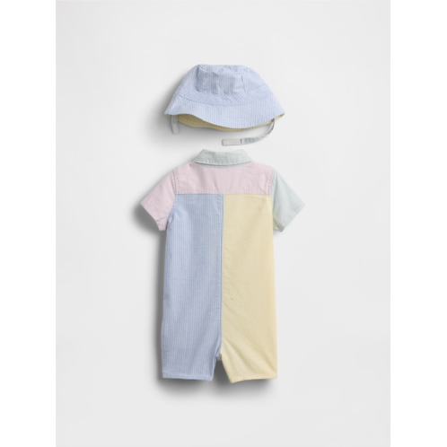 - Soft, stretch Oxford cotton shorty one-piece with a matching reversible bucket hat outfit set.