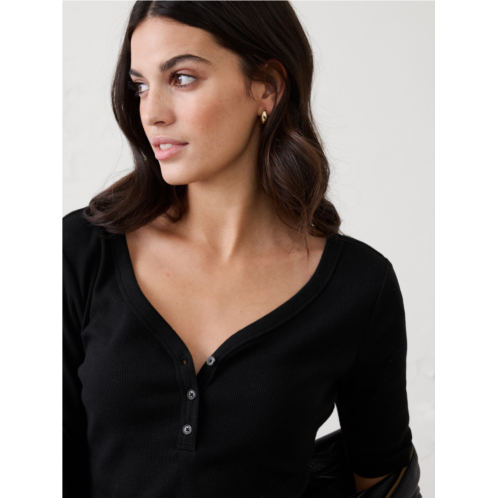bananarepublic Ribbed Elbow-Sleeve Henley T-Shirt