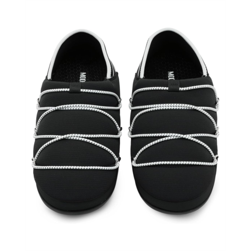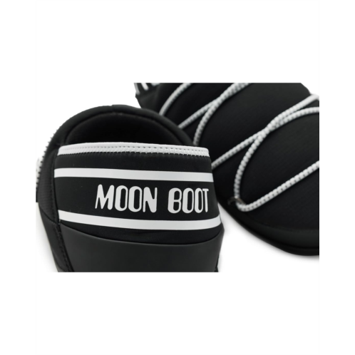 - The lounge-to-street revolution, Moon Boot Icon Slipper. Crafted with a premium leather upper, this slipper delivers a luxe feel with lasting durability, while the soft polyester lining and insole wrap your feet in all-day comfort. The pull-on design makes slipping in effortless, perfect for relaxed mornings or laid-back evenings. What truly sets this Icon apart are the laces arranged in irregular arches, giving the slipper a bold, expressive personality that feels fashion-forward yet functional. A synthetic rubber outsole adds reliable grip and flexibility, so every step feels steady and secure. Finished with contrasting stripes at the back for a subtle pop of style, this slipper proves that comfort doesn't have to be quiet.