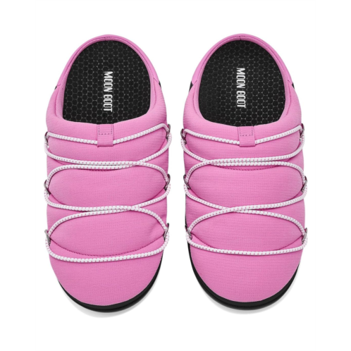 - Your daily retreat, Moon Boot Soft Slipper. Designed with a smooth leather upper, this slipper delivers a premium look that feels just as good as it looks. Inside, the soft polyester lining and cushioned insole wrap your feet in cloud-like comfort, making every step feel relaxed and supported, from slow mornings to late-night unwinding. The easy pull-on design means no fuss, just instant comfort whenever you need it. Finished with a durable synthetic rubber outsole, the MB SOFT SLIPPER offers reliable grip and stability for indoor lounging or quick outdoor moments.