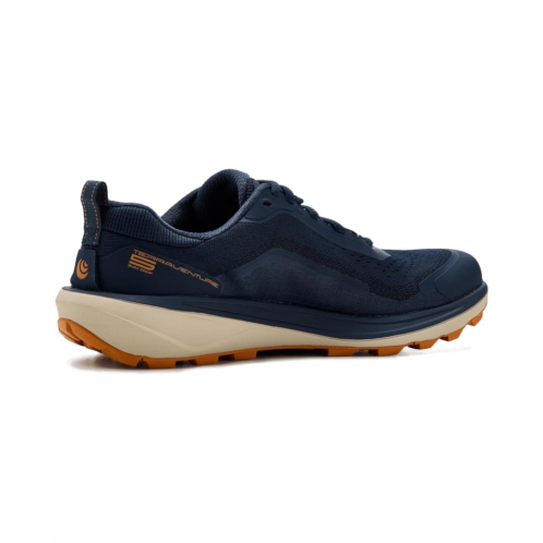 - The Topo Athletic Terraventure 5 is a lightweight yet rugged trail running and hiking shoe built for versatility on technical terrain. Its tightly woven mesh upper ensures a secure, durable, and breathable fit, while the 25 x 22 mm platform balances moderate cushioning with a forefoot rock plate for protection against sharp rocks and uneven surfaces. A new dual mesh upper design reinforces durability in high-abrasion zones, and the specialty FKT insole provides a responsive step-in feel with optimal drainage for wet conditions. The Vibram Megagrip outsole delivers superior traction and slip resistance across varied surfaces, while the gaiter system with hook-and-loop attachment adds adaptability for rugged trails.