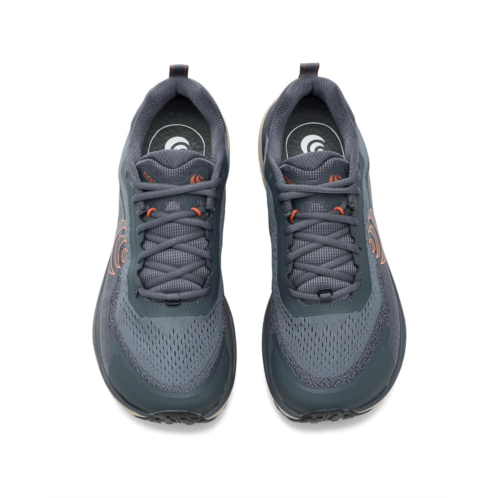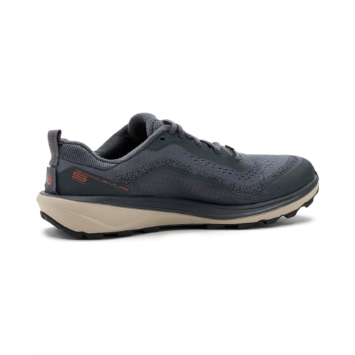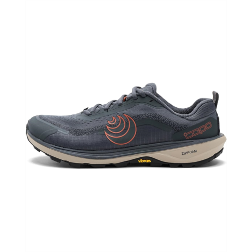 - The Topo Athletic Terraventure 5 is a lightweight yet rugged trail running and hiking shoe built for versatility on technical terrain. Its tightly woven mesh upper ensures a secure, durable, and breathable fit, while the 25 x 22 mm platform balances moderate cushioning with a forefoot rock plate for protection against sharp rocks and uneven surfaces. A new dual mesh upper design reinforces durability in high-abrasion zones, and the specialty FKT insole provides a responsive step-in feel with optimal drainage for wet conditions. The Vibram Megagrip outsole delivers superior traction and slip resistance across varied surfaces, while the gaiter system with hook-and-loop attachment adds adaptability for rugged trails.