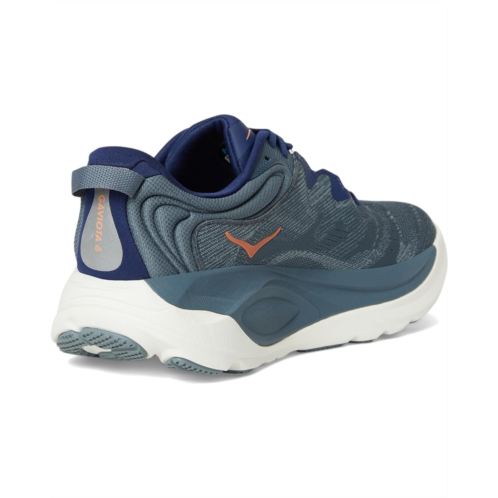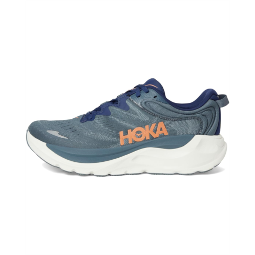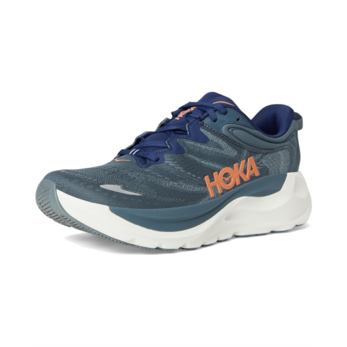 - Forget what you thought you knew about stability shoes; the Hoka Gaviota 6 redefines the category with a ride that feels effortlessly fluid. Designed for runners who crave balance without bulk, its breathable engineered mesh upper keeps airflow high and comfort higher, paired with a plush comfort collar and heel pull webbing for easy on-and-off wear. The enhanced H-Frame technology gently guides overpronation without rigid materials, creating a smooth, natural transition through every stride. Inside, compression-molded foam cushions impact for long-lasting comfort, while the internal ghillie lacing system and lace-up closure provide a secure, locked-in fit. Finished with reflective details for visibility and an abrasion-resistant rubber outsole for durable traction, the Gaviota 6 lets you chase daily miles with confidence, stability, and a surprisingly smooth ride, run after run.