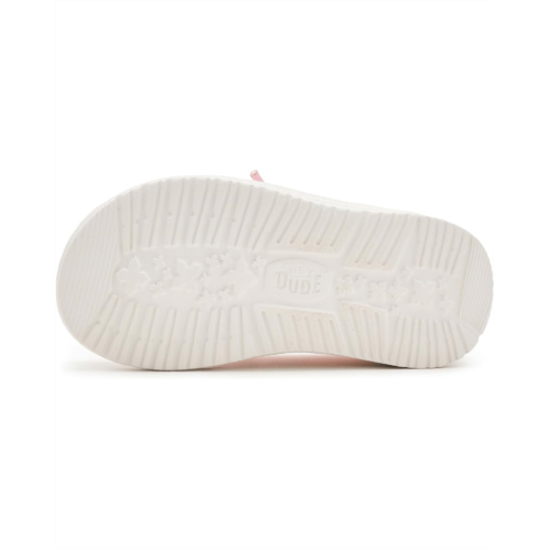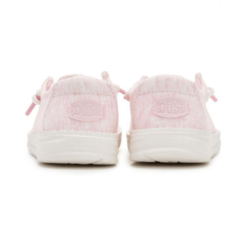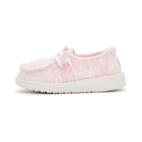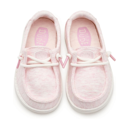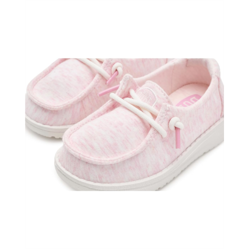 - Built for the rhythm of play, Hey Dude Kids Wendy T Stretch Jersey Light Pink. Designed for all-day adventures, this lightweight slip-on features a soft cotton upper and lining that feels gentle against little feet while staying breathable and flexible. The rounded toe design supports natural foot shape, giving growing feet the space they need to move freely and comfortably. Thanks to the innovative Flex & Fold construction, every step feels easy, natural, and perfect for active kids on the go. An ultra-light Ethylene Vinyl Acetate insole cushions each stride, while the Ethylene Vinyl Acetate outsole delivers flexible support without weighing her down. The pull-on style makes getting ready a breeze, encouraging independence and hassle-free mornings.