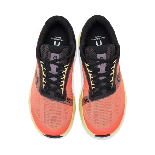 - Meet the On Kids Cloudsurfer Youth, engineered to keep up with nonstop movement and growing feet. Designed after carefully analyzing how big kids run, these shoes feature an adapted CloudTec Phase system that works seamlessly with their anatomy and natural gait. The lightweight Helion superfoam midsole delivers smooth, effortless transitions while absorbing heel impact for cushioned, confident strides. A breathable polyester upper and lining keep feet feeling fresh, while the Ethylene Vinyl Acetate insole adds soft underfoot comfort from morning play to after-school adventures. The durable rubber outsole extends over the toe box with added channels and grooves, enhancing flexibility, grip, and range of motion for running, jumping, and quick turns. A protective TPU toe cap shields little toes from everyday bumps, and the secure lace-up closure ensures a snug, supportive fit.