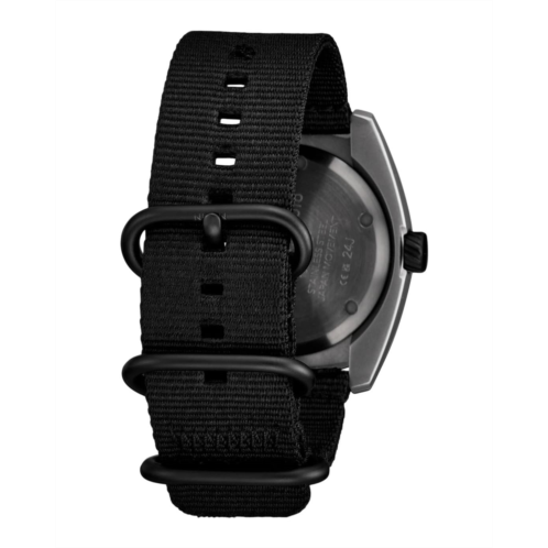 닉슨 - The go-anywhere, do-anything watch - Nixon Clutch 42. Made for those whose fashion is function, the Clutch 42 is geared up to get down on the only schedule that matters. Yours. Powered by a reliable Miyota Japanese movement, it ensures accurate timekeeping with minimal maintenance. The abrasion-resistant, quick-drying nylon band offers durability and comfort, making it ideal for active lifestyles. Its standout feature is the dimensional dial packed with lume, providing bold visibility and a striking look.