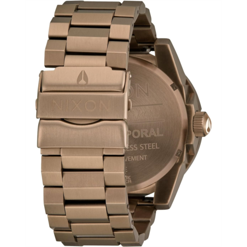 닉슨 - The Nixon Corporal Stainless Steel watch with a clear, tactical advantage. The face is protected by a recessed crystal and the oversized bezel brings out the best in rugged durability. It's functional design combined with details like faceted links that look like a mountain range when viewed from the side means the Corporal always has the high ground. The stainless steel watch feature Miyota Japanese Quartz three-hand and double locking foldover clasp closure.