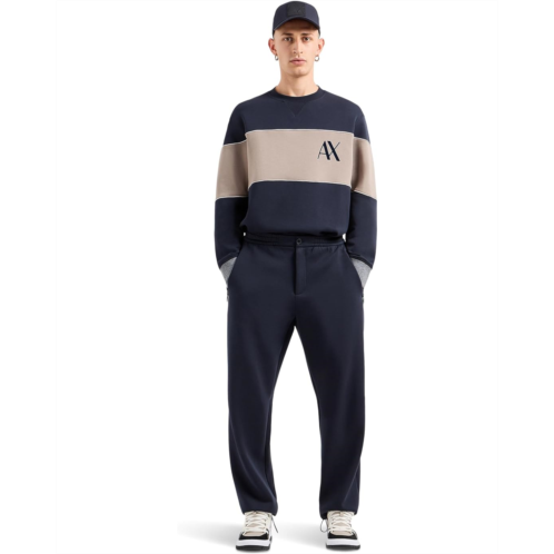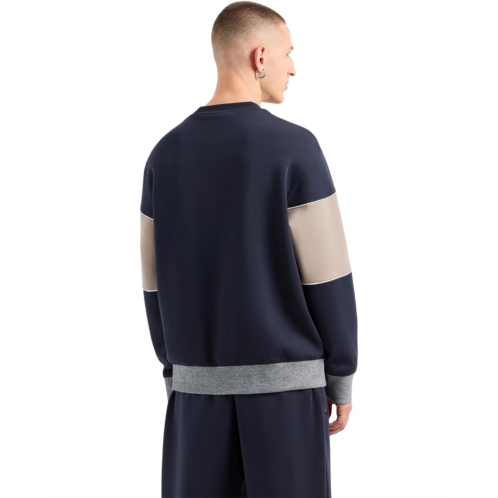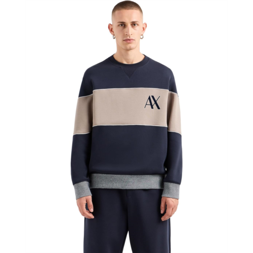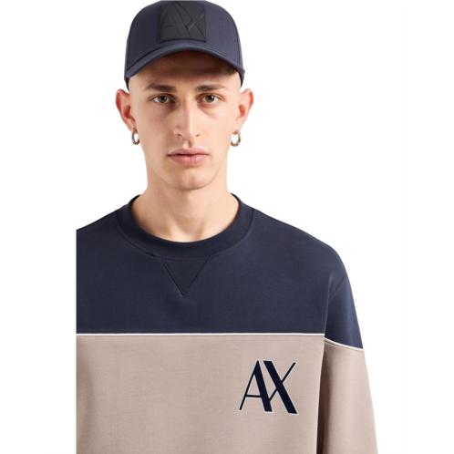 아르마니 - Stay cozy and stylish wearing the Armani Exchange Color Blocked Fleece sweatshirt. Crafted from soft fleece fabric, this pullover combines comfort with a sporty aesthetic. The color-blocked design in shades of navy and contrasting hues adds a dynamic and modern touch. Featuring long sleeves, a straight hem, a crew neck, and ribbed trims for a snug fit, this pullover sweatshirt is ideal for layering or wearing on its own during cooler weather.