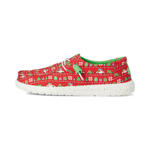 Step into effortless style wearing the Hey Dude Wendy Holiday Sweater. This slip-on sneaker, crafted with a soft cotton upper and an easy, breezy textile finish, is ready for anything. The easy-on elastic laces let you quickly pull them on and head out the door. Experience go-to comfort all day long, thanks to the lightweight EVA foam insole and outsole. Plus, the removable insole adds an extra layer of cushioned support.