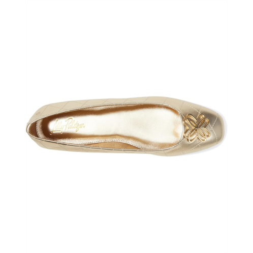 Make your walking experience both comfortable and chic wearing the Lilly Pulitzer Patina Ballet Flats. The square toe ballet flat comes with a quilted Nappa perlato leather upper with gold metal logo detail. The 5MM LP plush padded footbed adds cushioning to every step.