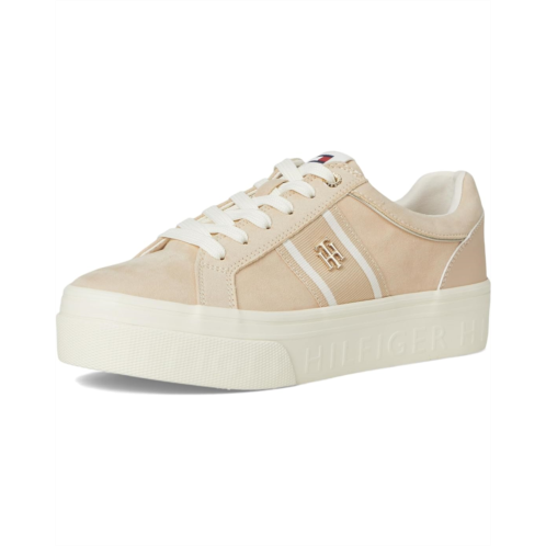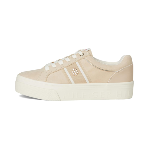 Stylish and comfortable, the Tommy Hilfiger Badria Sneakers add a touch of sporty glamour to almost any look and will be a great addition to your wardrobe. The low-top, round-toe sneakers are designed with a polyester upper, polyester lining, and polyester insole. The branded logo hardware and signature ribbon offer authenticity and the lace-up closure ensures a secure fit.