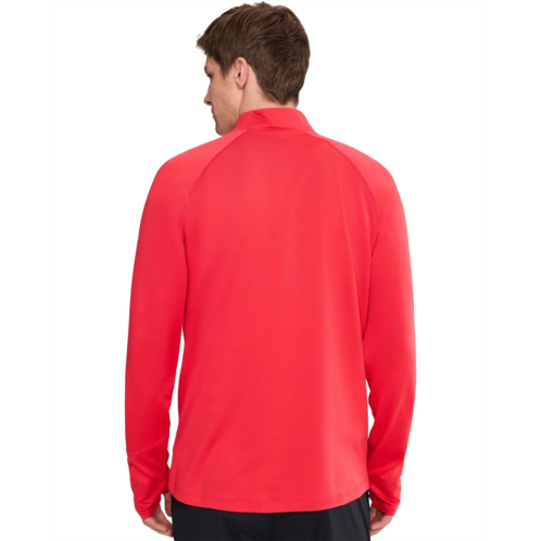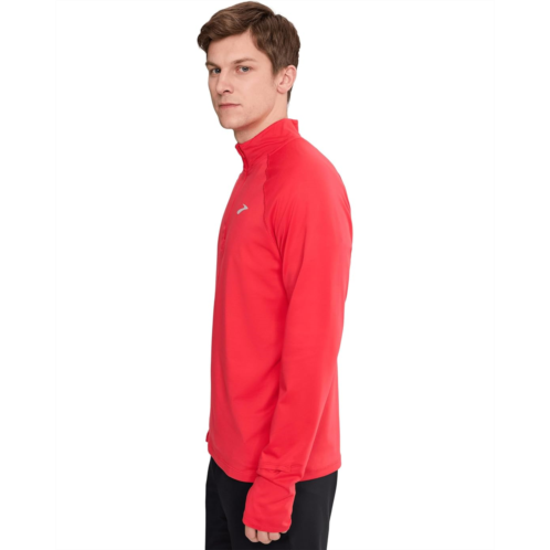 - Distraction free comfort in a go-to-layering piece. Featuring a stand collar with a quarter zip-closure, long sleeves with thumbholes, straight hemline and branding on front upper-left.