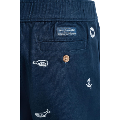 - Let your little one stay comfortable and chic in the Janie and Jack Embroidered Pull On Shorts. The pull-on style shorts feature a mid-rise waist, an elasticated waistband with a drawcord closure, two welt pockets at the back with button closure, embroidered details allover, and a short length.