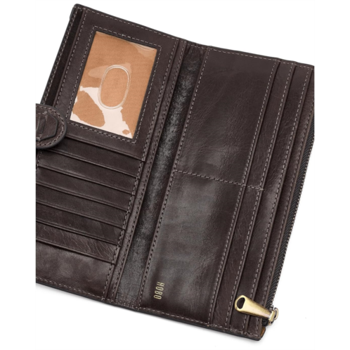 - Designed to be your daily companion, HOBO Dunn Continental Wallet will keep you feeling put together and organized. The sleek leather wallet features a snap closure, zippered gusset pocket, five interior slip pockets, and a brushed antique brass hardware.