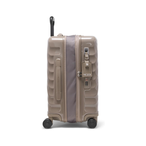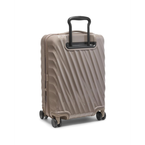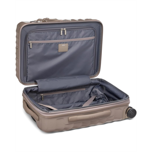 투미 - Striking from any distance, this Tumi 19 Degree International Expandable 4 Wheel carry-on boasts the brand's most iconic design code: precise 19-degree angles cascading in fluid, sculpted contours. The compression straps, retractable top, side carry handles, and a 3-stage telescoping handle make it easy to carry around. This trolley bag is designed with two zippered interior pockets, a dual-compartment zippered pocket, a TUMI tracer, an integrated TSA lock, a built-in USB-C charging port (supports up to 65W USB-C 2.0 cables and fast charging up to 65W 3A), a zipper expansion, and four recessed dual spinner wheels. Made from polycarbonate, it has a PROTX2-coated lining. Offering zippered entry to the main compartment, this carry-on bag is lightweight, resilient, and perfect for international and domestic travel.