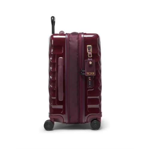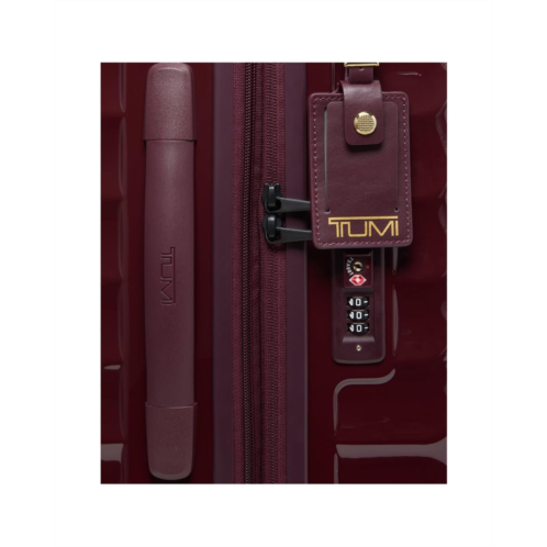 투미 - Striking from any distance, this Tumi 19 Degree International Expandable 4 Wheel carry-on boasts the brand's most iconic design code: precise 19-degree angles cascading in fluid, sculpted contours. The compression straps, retractable top, side carry handles, and a 3-stage telescoping handle make it easy to carry around. This trolley bag is designed with two zippered interior pockets, a dual-compartment zippered pocket, a TUMI tracer, an integrated TSA lock, a built-in USB-C charging port (supports up to 65W USB-C 2.0 cables and fast charging up to 65W 3A), a zipper expansion, and four recessed dual spinner wheels. Made from polycarbonate, it has a PROTX2-coated lining. Offering zippered entry to the main compartment, this carry-on bag is lightweight, resilient, and perfect for international and domestic travel.