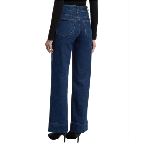 The Paige Sasha 32 Novelty Pockets In Enfield Jeans is a high-rise wide leg with a fitted top block and a slightly relaxed fit. This pair is cut from the bestselling PAIGE VINTAGE denim in a dark wash with gold hardware novelty patch pockets on the front and two patch pockets on the back. The pull-on style jeans features belt loops and a zip-fly with button closure.