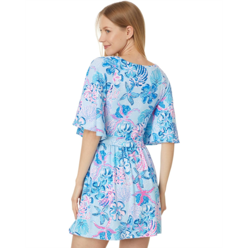Make your holidays perfectly stylish wearing the Lilly Pulitzer Minka Skirted Romper. It features a plunging neckline, short flutter sleeves with a touch of flamboyant flare, and twist front bodice forming a fit-and-flare silhouette.