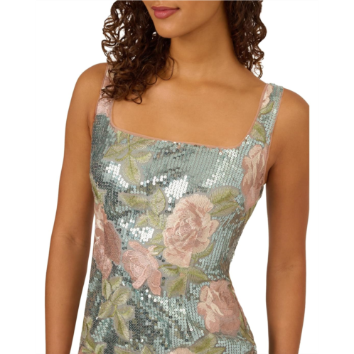 Twirl into your best look yet wearing the Adrianna Papell Sequin Embroidery Short Dress. This floral sequin dress is the perfect women's cocktail look for day or evening. The allover sequin finish contrasts with the roses embroidered on top for layered textural depth. The square neckline creates a flattering face-framing effect, while the wide straps provide comfort and support. A back zippered closure ensures a tailored fit that enhances natural curves without feeling restrictive.