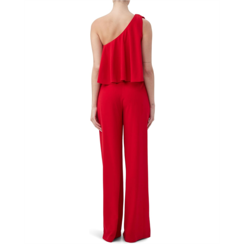 Drape yourself in luxury. The Trina Turk Royal Jumpsuit: A symphony of soft fabric and chic design. Featuring a sophisticated one-shoulder neckline and eye-catching ruffle detail, this jumpsuit makes a bold statement. The wide-leg pant design brings effortless glamour, offering comfort and ease with every step. The discreet zippered closure on the back ensures a seamless fit for any occasion. Whether you're attending a cocktail party or a special event, the Royal Jumpsuit's refined silhouette and luxurious detailing will have you turning heads.